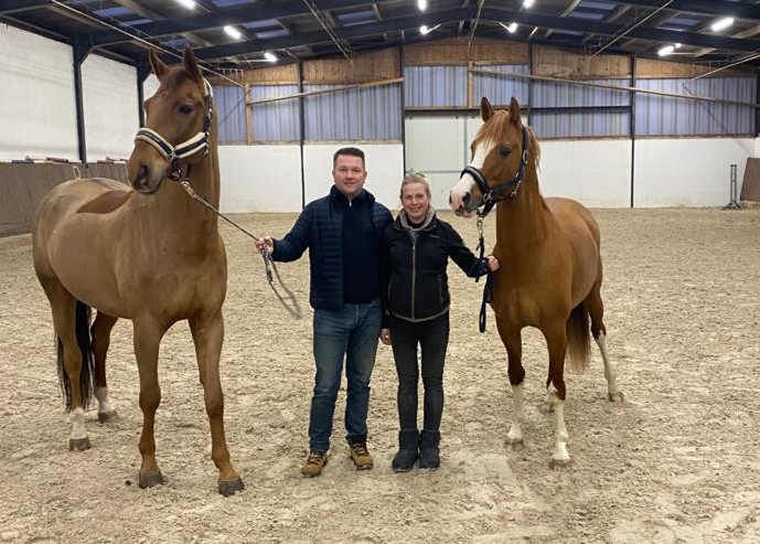 Für Michael Andres und seine Lebensgefährtin Julia Schönherr wird 2021 ein spannendes Jahr voller Neuanfänge. Der gebürtige Berliner Andres, der seit mehreren Jahren Pferde transportiert und Anhänger vermietet, hat die Berufsreiterin 2018 bei einem beruflichen Einsatz in Dallgow kennengelernt. "Ich sollte für Katrin Knetsch ein Pferd transportieren, Katrin und Julia sind befreundet und Julia war gerade in Dallgow zu Besuch. Da haben wir uns getroffen und dann verliebt. 2020 erfolgte mein Umzug zu Julia, da ich beruflich in der Wahl meines Wohnortes ungebundener bin als sie." Auch im Sattel seines Dressurpferdes Farfarello sammelt die erfolgreiche Zerbsterin mittlerweile Schleifen bis Klasse S. Allerdings waren die Turniererfolge im Oktober 2020 erst einmal die letzten, denn am 20.Februar 2021 kam der erste Sohn zur Welt.