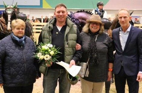 Im Rahmen der Fahrsportprüfungen der Hippologica, wurde Dirk Berlin für sein außerordentliches ehrenamtliches Engagement im Fahrsport geehrt. Der 50jährige Brandenburger war lange selbst im Turniergeschehen mit seinen Tinker-Gespannen aktiv. Durch sein Elternhaus kam er beruflich zuerst in die Gastronomie, ist aber seit einigen Jahren schon bei Projekten der Lebenshilfe Oberhavel im Einsatz. Auf dem Luisenhof in Liebenberg kann er den Beruf mit der Leidenschaft für Pferde verbinden. Der Pferde- und Ferienhof der Lebenshilfe bietet Reitstunden auf fünf Haflingern, sowie Pferdepension und Ferienwohnungen. Dirk Berlin ist Betreuer und Werkstattchef