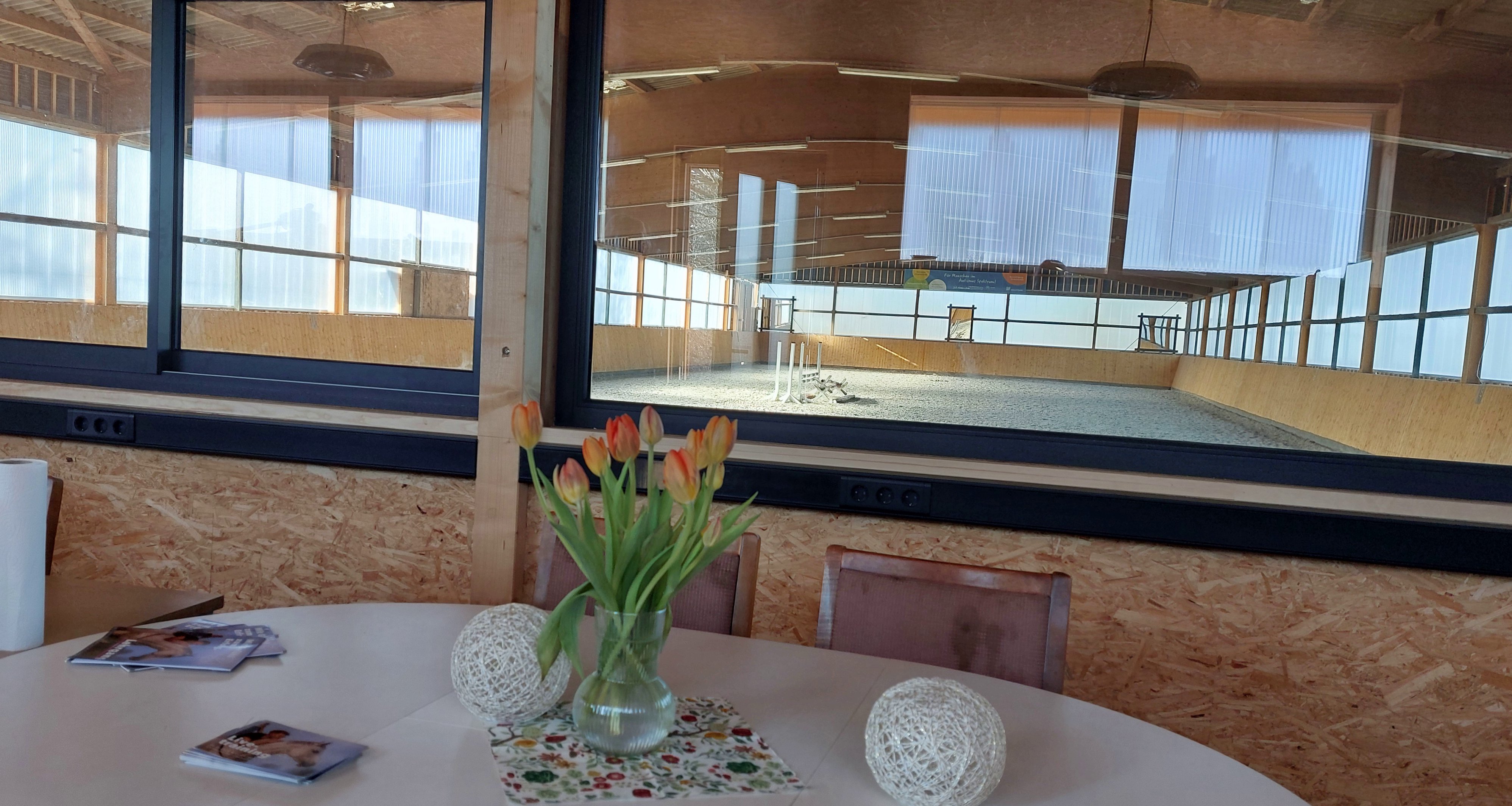 Natürlich ist der Hof auch weiterhin Pferdepension mit Boxen und Offenställen,  Boxen werden ab 470 Euro, Plätze im Offenstall für 400 Euro angeboten.  Die Reitschule bietet klassischen Reitunterricht an – für Anfänger und Fortgeschrittene aller Altersklassen. Unterricht in Dressur, Springen und Longieren wird Schritt für Schritt erweitert.  Und für alle, die bereits im Turniersport unterwegs sind, gibt es schon gute News: im September gibt es ein dreitägiges Dressur- sowie ein dreitägiges Springturnier von Klasse E bis S* Dafür werden aktuell alle Turnier- und Abreiteplätze mit modernem Ebbe-Flut-Boden ausgestattet. Die 60 x 20 m große Reithalle hat bereits neuen Ebbe-Flut-Boden.